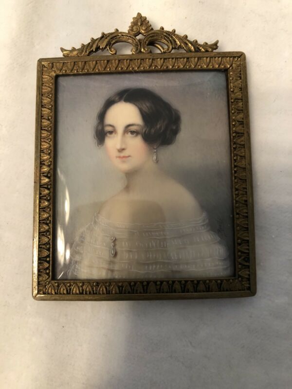 Vintage Female Portrait Picture In Ornate Brass Frame