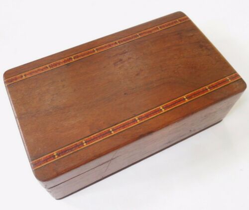 Vintage hard Wood Marquetry geometric inlay Handmade Hinged Box casket 6 3/4"x4