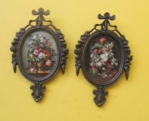 Title (ebay affiliate link): Set of 2 Vintage Italy Glass Oval Pictures Metal Frame Floral Bouquets