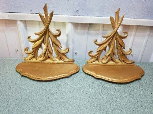 *PAIR Vintage SYROCO WOOD Wall Sconces Shelves Antique Hollywood Regency
