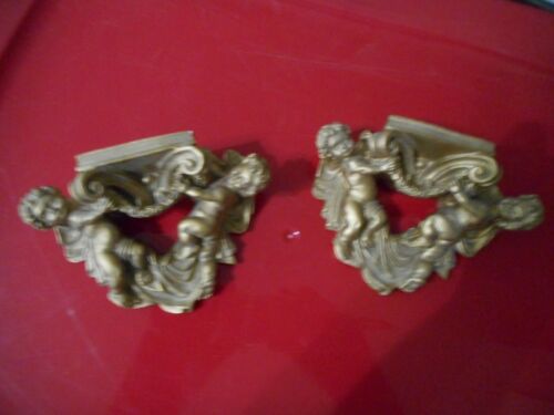Title (ebay affiliate link): Vintage Pair Wall Shelf Sconce NAKED CHERUB ANGEL Heart SET FRENCH PROVINCIAL