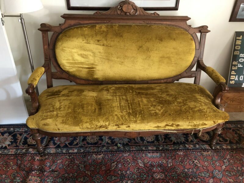 Title (ebay affiliate link): Antique 1880 - 1890 Victorian Sofa Couch Settee Ornate Carved Gold