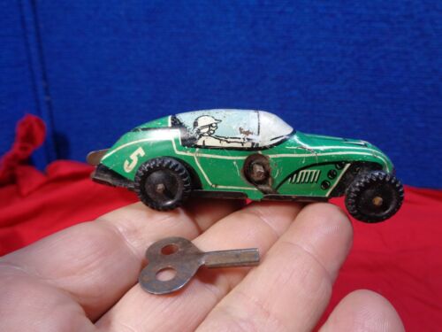 VINTAGE TIN LITHO WIND UP MINIATURE RACE CAR J-3