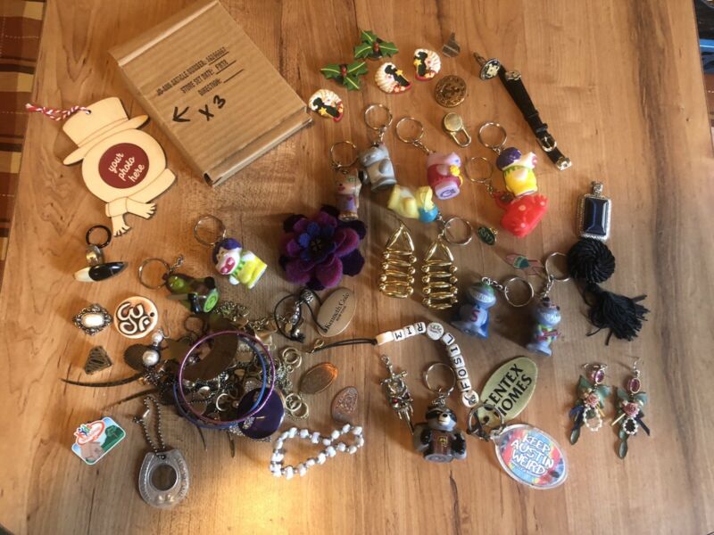 Title (ebay affiliate link): vintage To Mod Junk Draw Lot Jewlery Key Chains Pendants & Misc