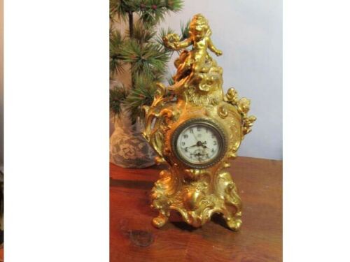 Title (ebay affiliate link): Antique Jennings Brothers Cherub Clock Gold Mantle Clock Porcelain Dial