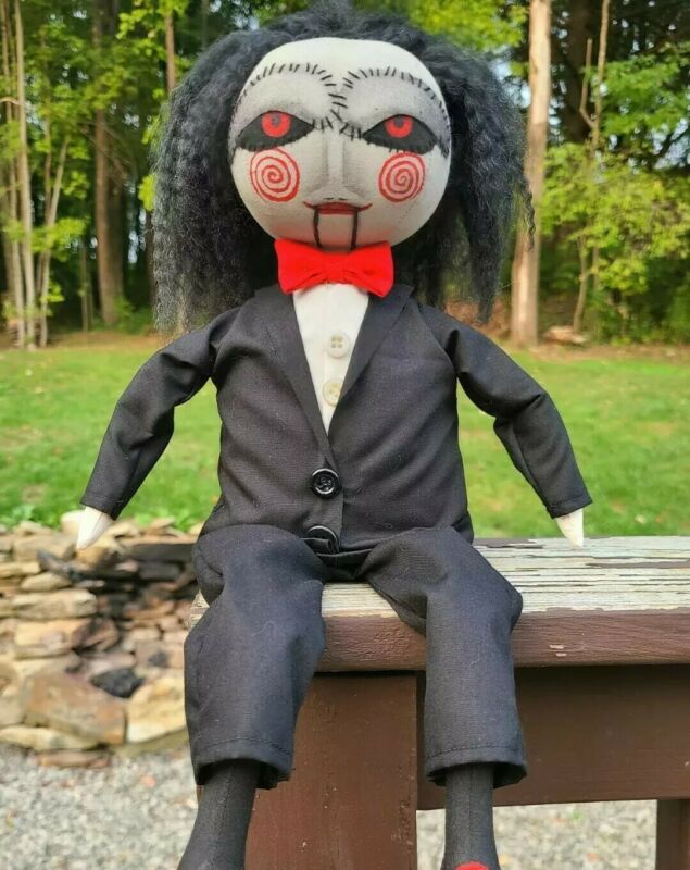 Title (ebay affiliate link): JIGSAW doll Halloween Primitive Doll Fall Folk Art Poke stump SCARY