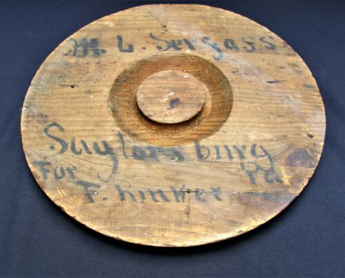 Antique Primitive Wooden Advertising Barrel Keg Lid Rinker Sergas Saylorsburg PA