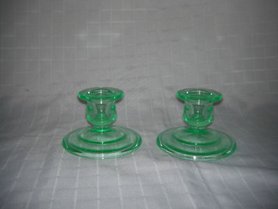 GREEN DEPRESSION CANDLE HOLDERS