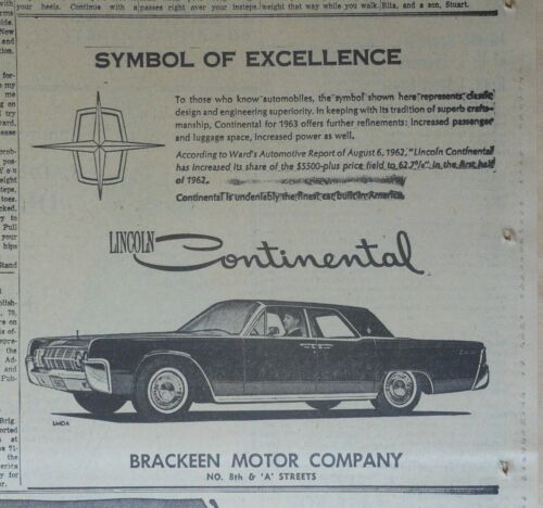 1962 newspaper ad for 1963 Lincoln Continental - Symbol of Excellence