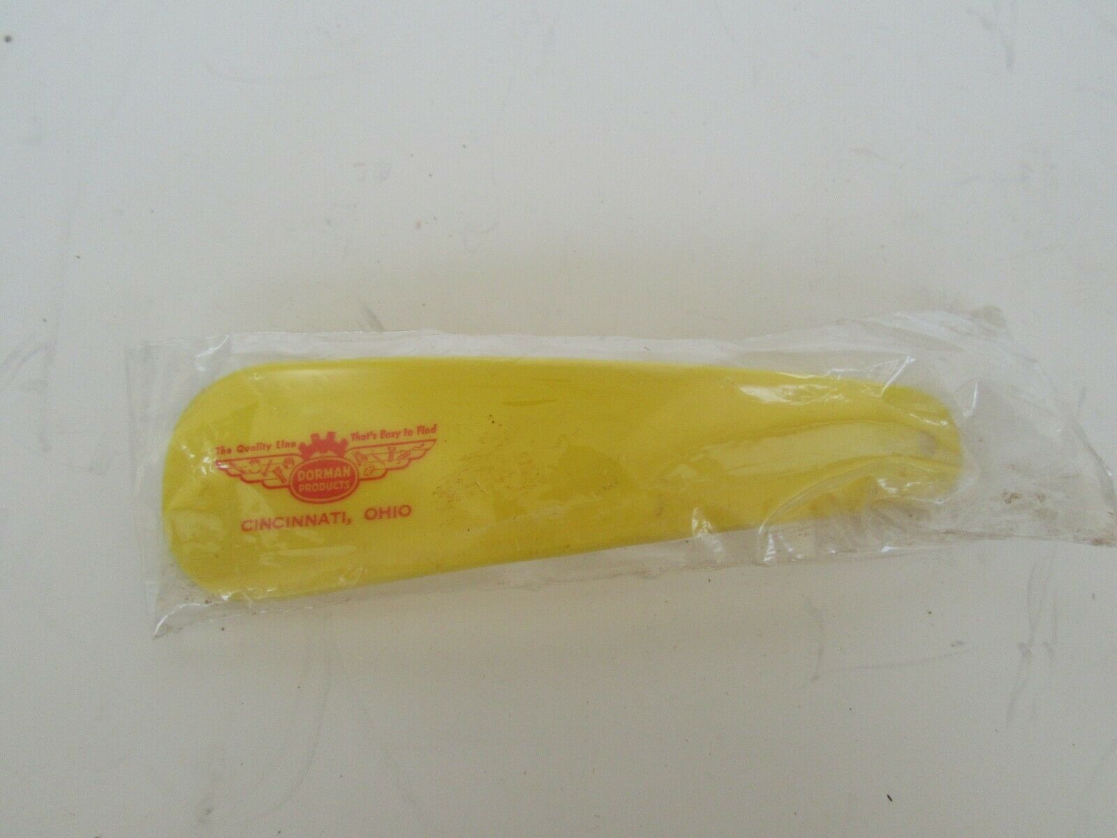 Title (ebay affiliate link): Vintage Dorman Products, Cincinatti, Ohio Advertising Plastic Shoehorn