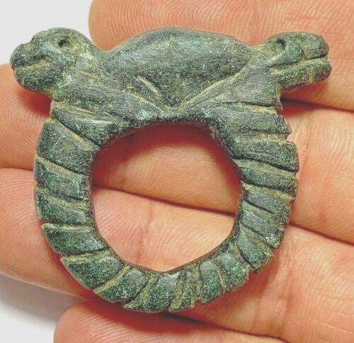 Title (ebay affiliate link): ANCIENT FAIENCE EGYPTIAN RING BLACK STONE 2 TURTLES (MUM & BABY) 930 BC 48mm