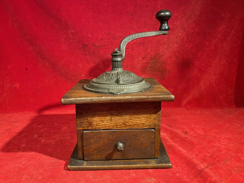 Title (ebay affiliate link): ANTIQUE CAST IRON WOOD DOVETAILED COFFEE GRINDER BY IMPERIAL ARCADE MANUFACT CO