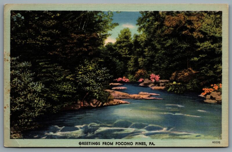 Title (ebay affiliate link): Postcard Pocono Pines PA c1930s Greetings From Pocono Pines Scenic River View