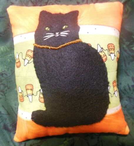 Title (ebay affiliate link): Primitive Stitchery Autumn Cat on a Candy Corn Pillow
