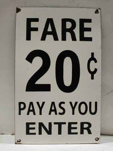 Porcelain Fare-20 Enamel Sign Size 16" x 10" Inches