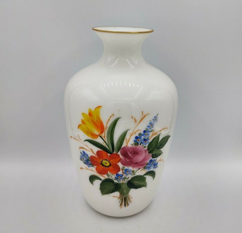 Title (ebay affiliate link): Vintage Large White Milk Glass Tall Vase Hand Painted Colorful Flower Bouquet