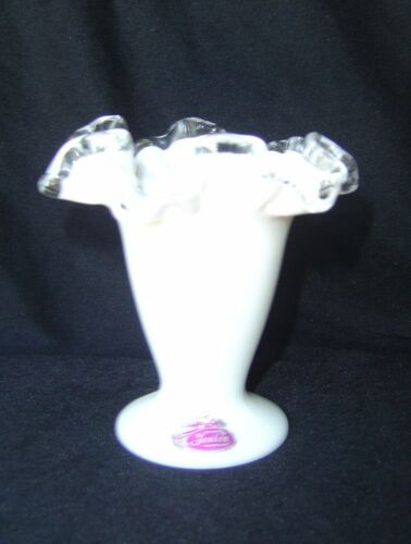 Fenton Silver Crest Ruffled Milk Glass Vase With Label 4 In EC