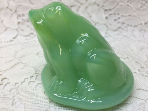 Green milk Vaseline glass Frog Toad Figurine Paperweight uranium yellow jadeite