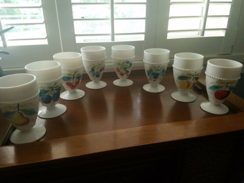 Vintage White Milk Glass Goblet Westmoreland Fruit Set