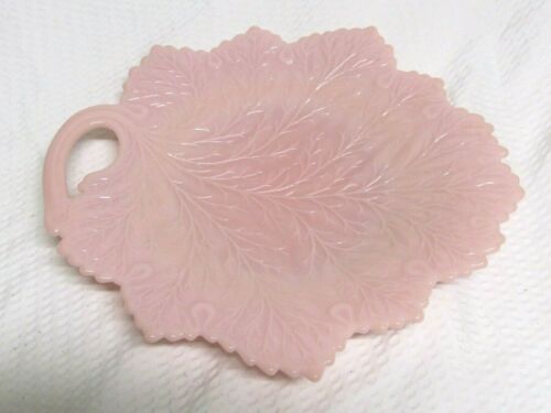 Fenton Pink Art Milk Glass Leaf Dish (11 1/2")