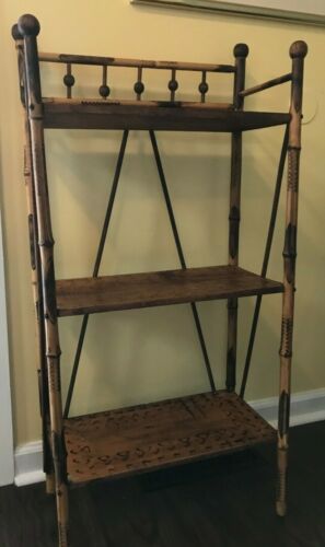 Title (ebay affiliate link): RARE Antique 3 tier Decorative BAMBOO wood Display Shelf Curio Chippendale Style