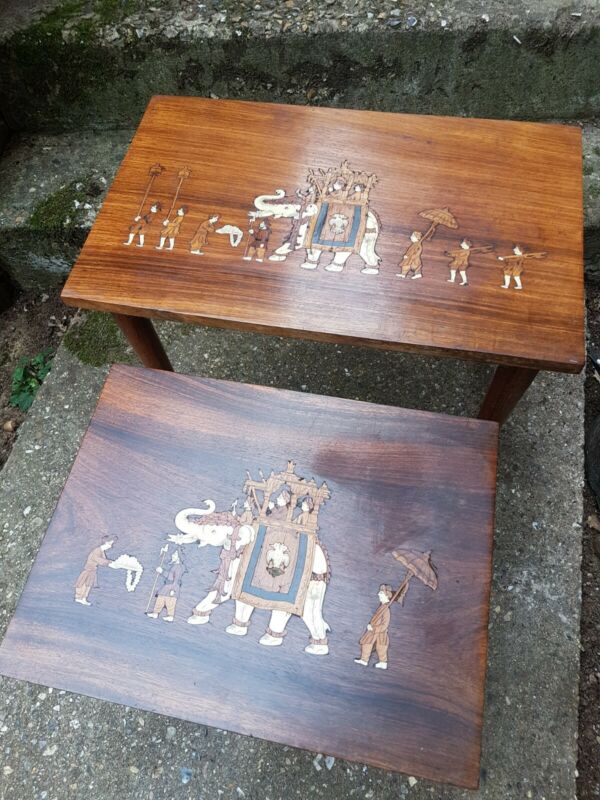Inlaid Nest Of Tables Indian Elephant Design