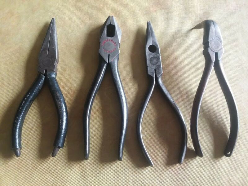 group of vintage needle nose pliers @lineman pliers crescent /boker /kraeuter