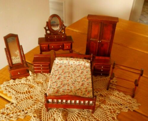 Title (ebay affiliate link): 7 VINTAGE WOOD DOLLHOUSE BEDROOM FURNITURE PIECES ~ BED, MIRROR, VANITY, ETC.