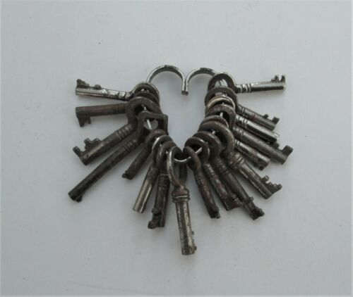 Title (ebay affiliate link): Bunch 17 Original Antique Keys on Heart Shaped Ring Cabinet Furniture Box