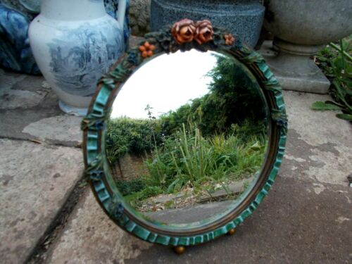 ANTIQUE BARBOLA MIRROR~VERY PRETTY WITH BEVELLED GLASS & FLOWERS~LADIES BOUDOIR