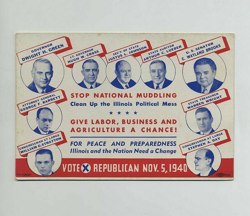 Title (ebay affiliate link): 1940 Vote Republican US State IL Illinois Political Campaign Postcard yz3735