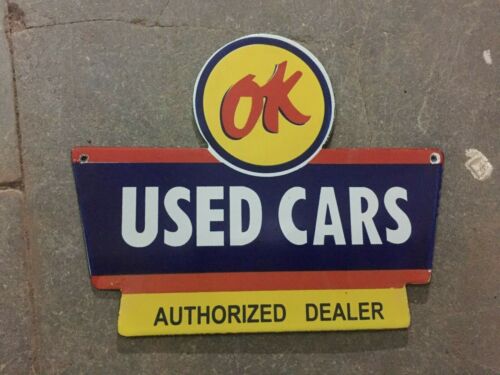 Porcelain Ok Used Car Enamel Sign Size 10" x 8" Inches