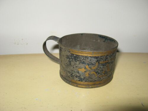 Title (ebay affiliate link): Antique BLUE TOLEWARE "A GIFT" Small TIN CUP Primitive