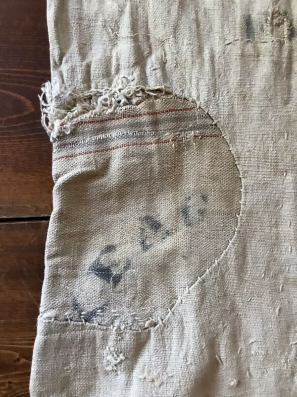 Title (ebay affiliate link): BEST OLD Antique BIG Grain Feed Sack Worn Patched Repairs Textile AAFA