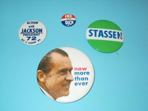 Title (ebay affiliate link): Political Buttons - 4 buttons Nixon, Jackson, Ike, Stassen.