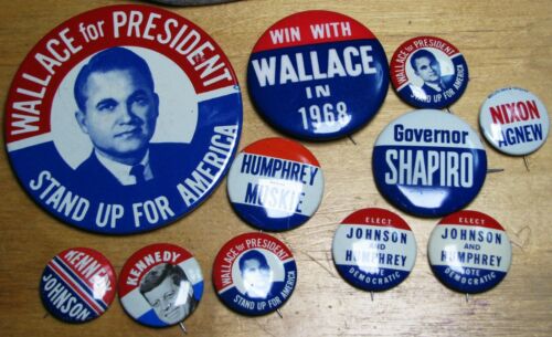 Title (ebay affiliate link): Political Button REPRODUCTIONS Wallace Shapiro Nixon Agnew Johnson Kenndy