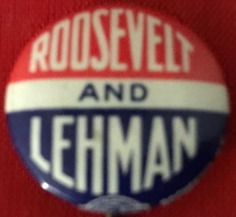 Political Pinback ROOSEVELT LEHMAN NY Coattail Pin Button Adverting Campaign FDR
