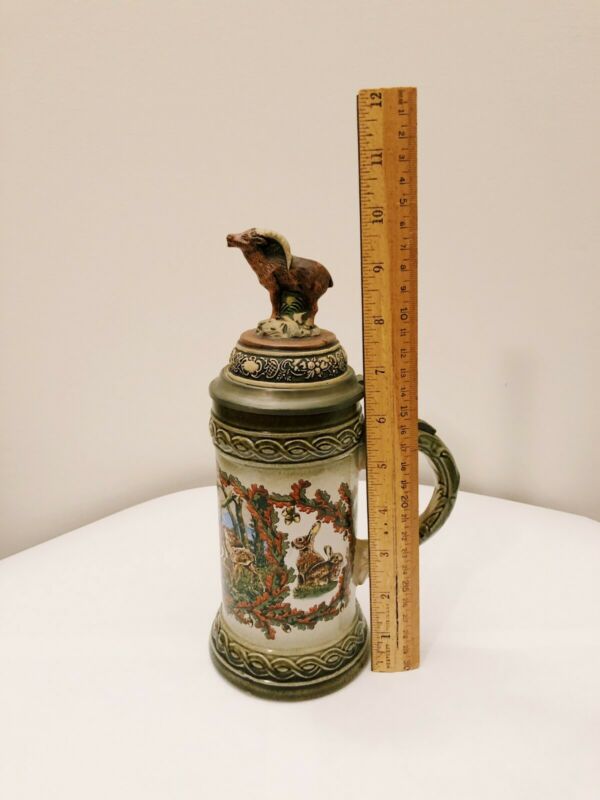 Title (ebay affiliate link): Vintage Lidded Beer Stein Original Gerzit W Germany Ram Lid with Wildlife Scene