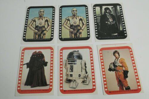 Title (ebay affiliate link): STAR WARS Vintage 1977 TOPPS Sticker cards SERIES 3 & 4, 6 CARD LOT, black & red