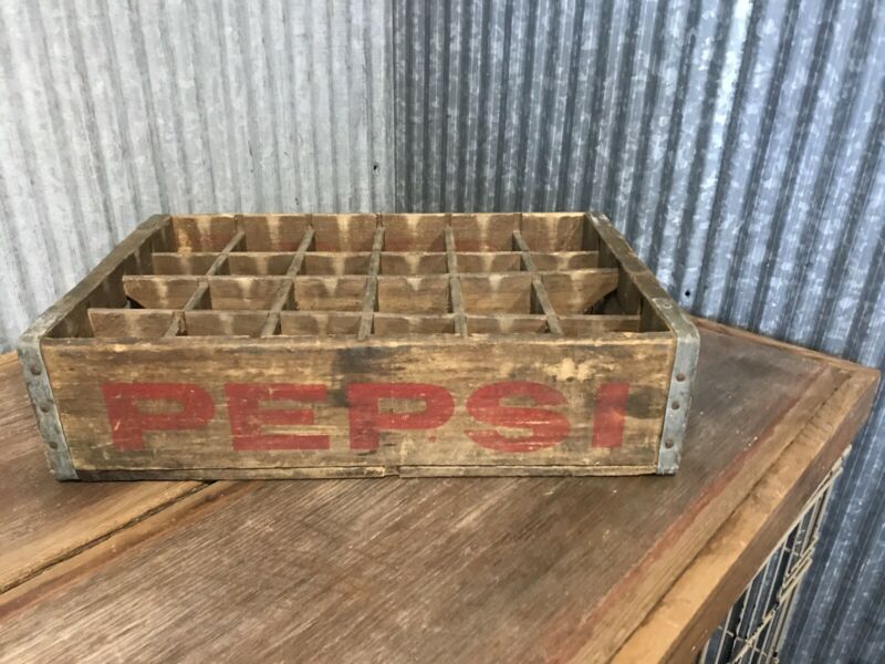 Vintage Wooden Pepsi Cola Crate 24 Soda bottle Shipping box Glass Bottle Holder