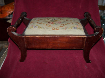 Title (ebay affiliate link): Antique Needlepoint Footstool-Wood Frame-Turned Sides