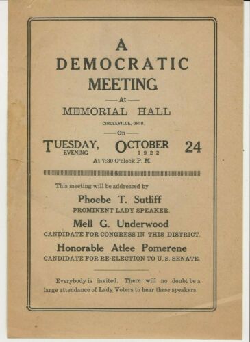 Title (ebay affiliate link): 1922 Flyer - A DEMOCRATIC MEETING, Memorial Hall, Circleville, Oh.