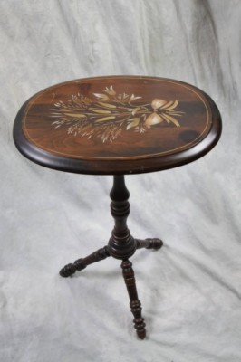 Title (ebay affiliate link): L121 VINTAGE HAND STENCILED FLORAL OVAL TILT TOP TABLE