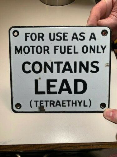 Old Antique Vintage Original Gas Station Contains Lead Porcelain Sign