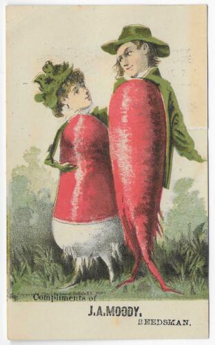 Title (ebay affiliate link): Vegetable People Adv Trade Card From J.A. Moody, SEEDMAN Youngstown OH