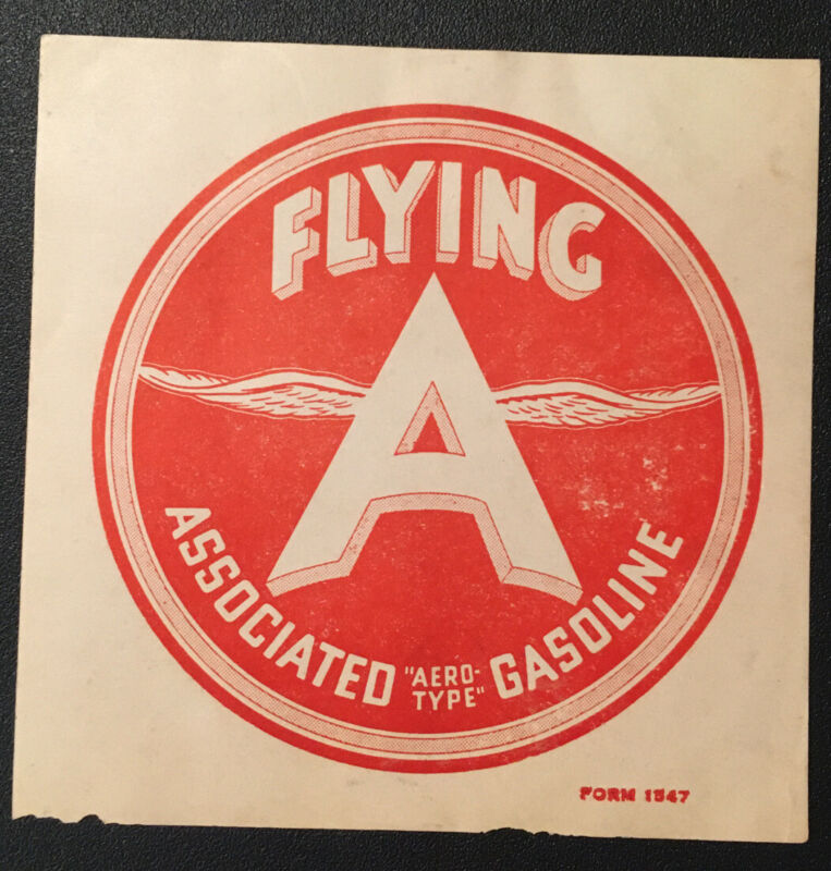 Scarce 1940s Flying A Aero Type Gasoline Decal Label