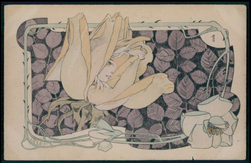 dd Art Nouveau Lelle woman on flower original old 1900s postcard