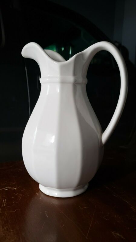Title (ebay affiliate link): Vintage White Ceramic Ironstone Pitcher Farmhouse Pottery Cottage Rustic