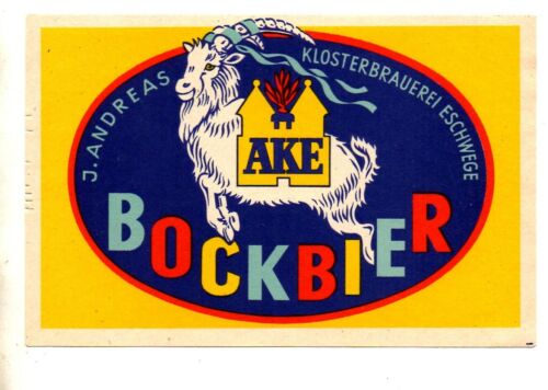 1950s J. ANDREAS KLOSTER BREWERY, ESCHWEGE, GERMANY AKE BOCK BIER BEER LABEL