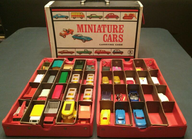Title (ebay affiliate link): Vintage 1966 Mattel Miniature Car Vinyl Carrying Case - Matchbox w/37 toy cars